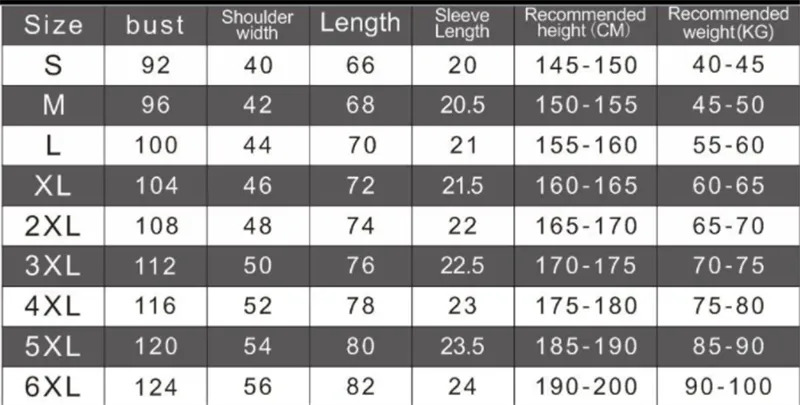 Size: S, M, L, XL, XXL, XXXL, 4XL, 5XL, 6XL